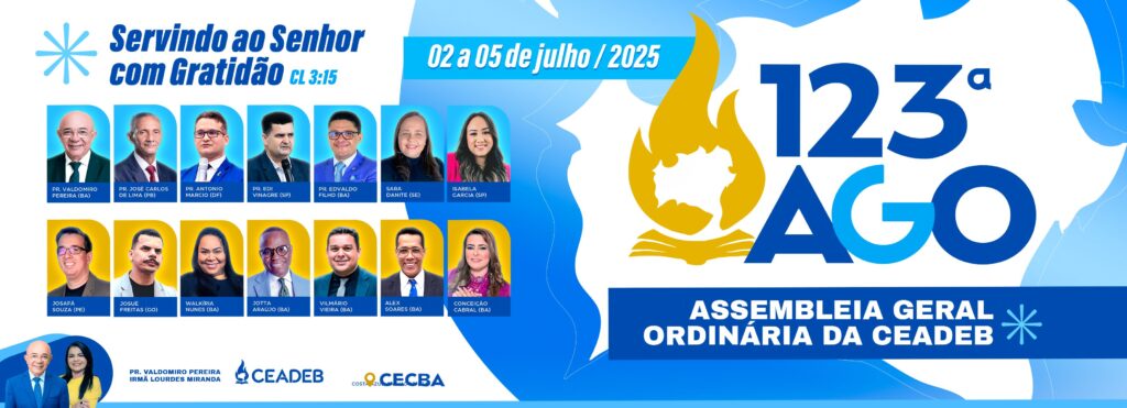 A 123ª Assembleia Geral Ordinária da CEADEB, que aconteceu entre os dias 2 e 4 de julho, foi um marco de unidade, renovação espiritual e legado ministerial, entre os pastores, esposas e membros das Assembleias de Deus na Bahia. Já na quarta-feira à noite, os auditórios do CECBA ficaram lotados. Autorizado pelo Pr. Presidente Valdomiro […]